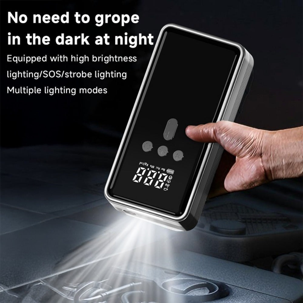 The Jump Starter Battery Pack With Air Compressor Is Equipped With A Smart Screen And Tire Pressure Detection Function To Make Your Operation More Convenient.It Can Adjust The Inflation Mode At Any Time During The Pumping Process. The Jump Starter Battery Pack Supports 4 Optional Units (PSI, BAR, KPA, Kg/cm2). A 150PSI Air Compressor Takes Approximately 2 Minutes To Inflate An Average Car Tire To 30PSI.